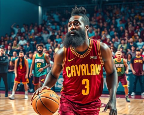 Дебют Джеймса Хардена за Кливленд Кавальерс 7 февраля 2026 года; Сакраменто, Калифорния, США. Защитник Кливленд Кавальерс Джеймс Харден (1) общается с рэпером Трэвисом Скоттом…