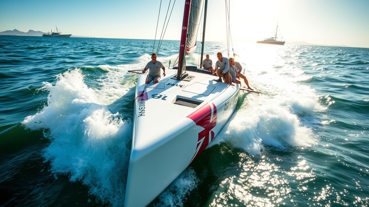 Гонки проходили на идентичных 50-футовых катамаранах, которые поднимаются над водой на фойлах, позволяя лодкам «летать». В воскресенье лодки достигали скорости более 90 км/ч (56 миль/ч). В ветреных условиях лодки использовали 18-метровый парус.