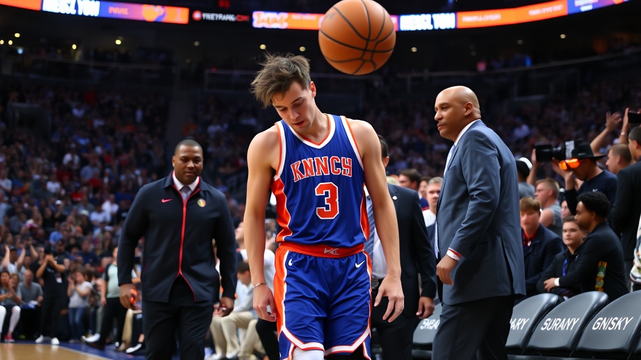 Джош Харт из Нью-Йорк Никс упал на пол в первой половине предсезонного матча НБА против Филадельфия 76ers, который состоялся 2 октября 2025 года в Абу-Даби, Объединенные Арабские Эмираты. Нападающий был удалён из матча открытия предсезона НБА 2025-26 за то, что бросил мяч в трибуны после того, как, похоже, получил травму без контакта в начале второго квартала.