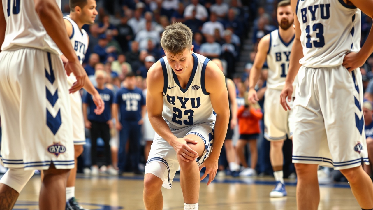 Он упал неудачно после прохода к кольцу и передачи мяча Кебе Кейта. Схватившись за правую икру, он остался лежать под корзиной несколько минут, прежде чем его подняли на ноги тренеры BYU.