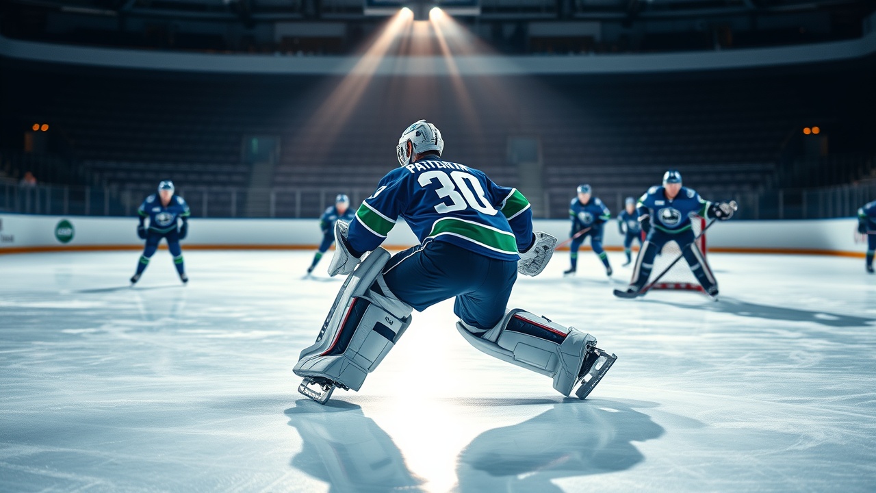 19 января 2026 года; Ванкувер, Британская Колумбия, КАН; Вратарь Ванкувер Канукс Йири Патера (30) катается на разминке перед игрой против Нью-Йорк Айлендерс на арене Роджерс. Обязательный кредит: Боб Фрид-Имагн Имиджес.