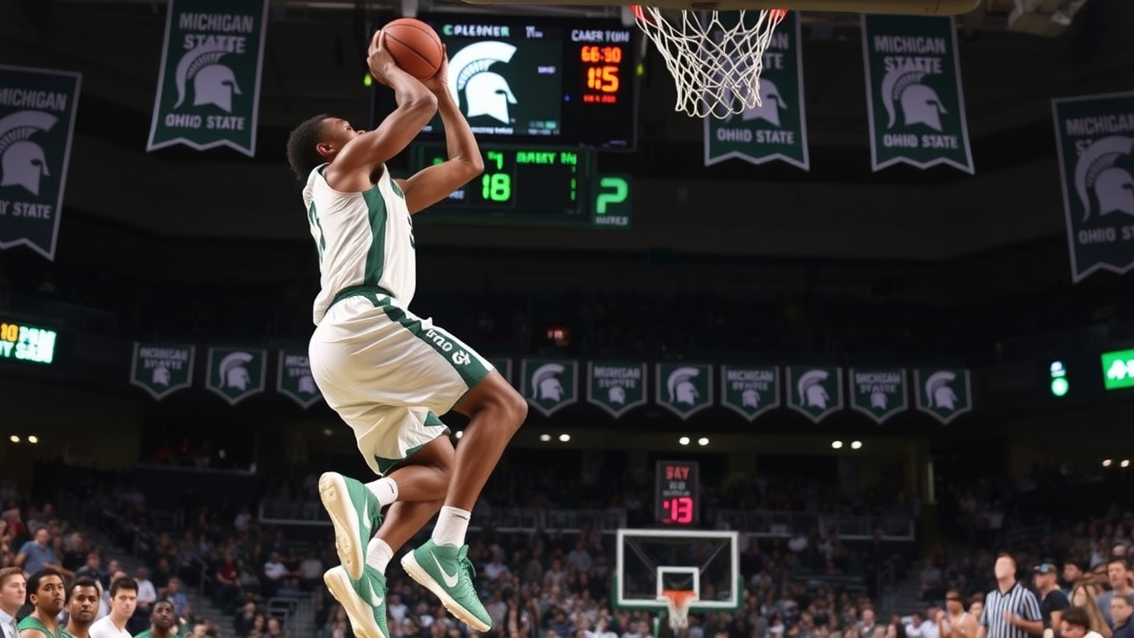 Мичиган Стейт имел двузначное преимущество за 1:35 до конца, но Огайо Стейт забросил семь подряд очков, сократив отставание до трех.