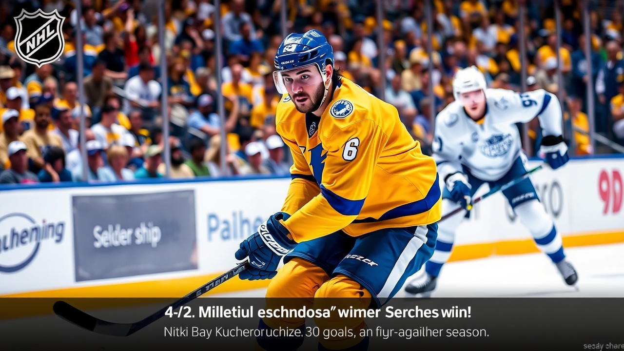 ТАМПА, Флорида. (AP) — Никита Кучеров забил свой 30-й гол в сезоне, что стало для него девятым сезоном с 30 и более голами, и добавил две передачи, доведя общее количество ассистов до 701 в карьере. Тампа-Бэй Лайтнинг одержали победу над Торонто Мэйпл Лифс со счетом 4-2 в среду вечером, что стало их шестой подряд победой.