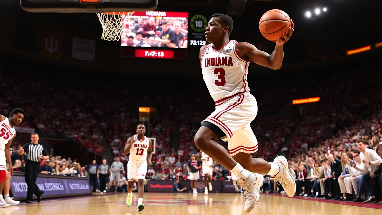 Индиана изначально захватила инициативу, сделав рывок 21-6, чтобы завершить первый тайм, превратив дефицит 21-23 в преимущество 40-29. Затем Хузерам пришлось выдержать серию атак во втором тайме от Пердью. Когда Бойлермейкеры сократили отставание до 41-47 после броска Смита с подъемом за 15:02 до конца, Хузеры ответили рывком 7-2.