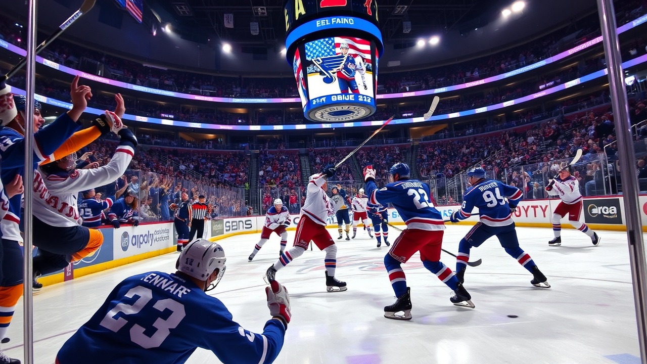 После того как Лафрениер вывел Рейнджерс вперед 2:1, Эдстром увеличил преимущество за 11:04 до конца третьего периода. Шен сократил отставание Блюз до 3:2 за 1:15 до конца.
