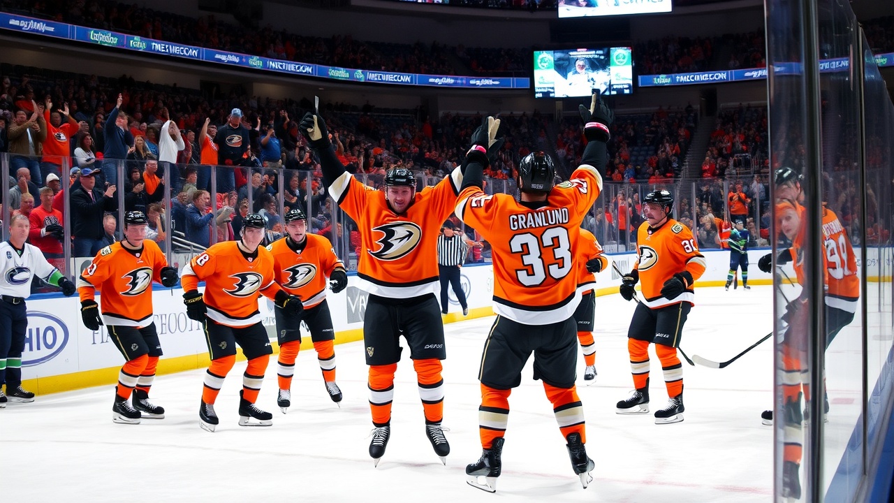Микаэль Гранлунд забил два гола, Алекс Килорн отметился голом и передачей, а Анахаим Утки одержали победу над Ванкувер Кэнакс со счетом 5-3 в четверг вечером. Мейсон Макавиш и Трой Терри также забили для Уток, в то время как Джон Карлсон сделал три передачи, а Лука Достал отразил 27 бросков.