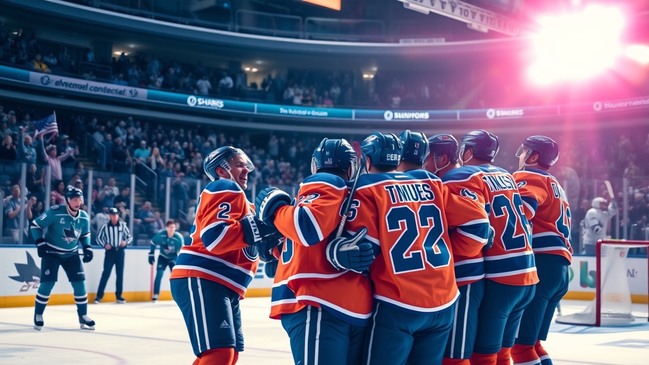ЭДМОНТОН, Альберта (AP) — Макс Джонс и Зак Хайман забили голы в третьем периоде, Адам Хенрик сделал две передачи, и Эдмонтон Ойлерс одержали важную победу со счетом 5-3 над Сан-Хосе Шаркс во вторник вечером, несмотря на отсутствие звезды команды Леона Драйзайтла.