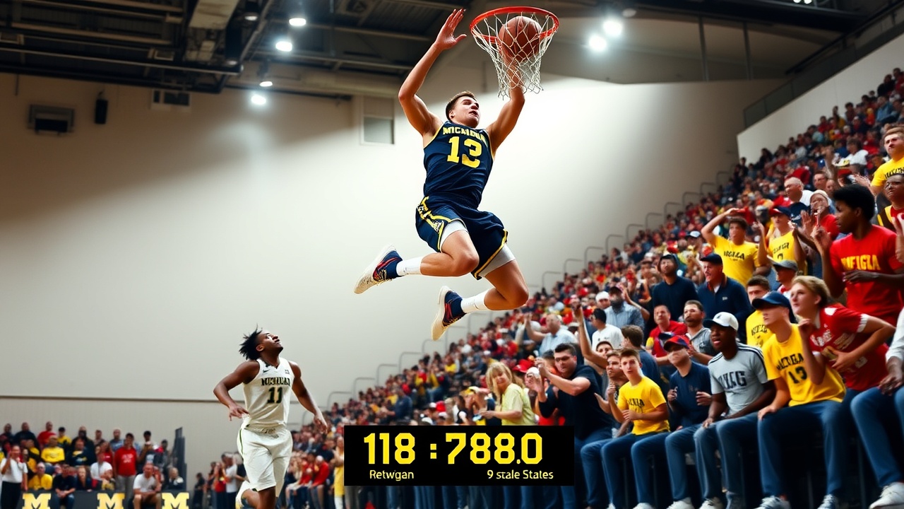«Волверины» (18-1, 8-1 Big Ten) захватили инициативу с рывком 21-6 во втором тайме после того, как «Баккаи» (13-6, 5-3) сравняли счет в девятый раз в середине второго тайма. Джон Мобли-младший из Огайо Стейт набрал 14 из своих 22 очков в первом тайме, когда Мичиган вел 33-30.