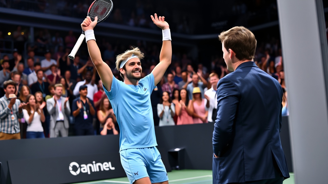 Оже-Альяссим завоевал свою первую победу на этом турнире, вернувшись в матче и обыграв Шелтона 4-6, 7-6 (7), 7-5.