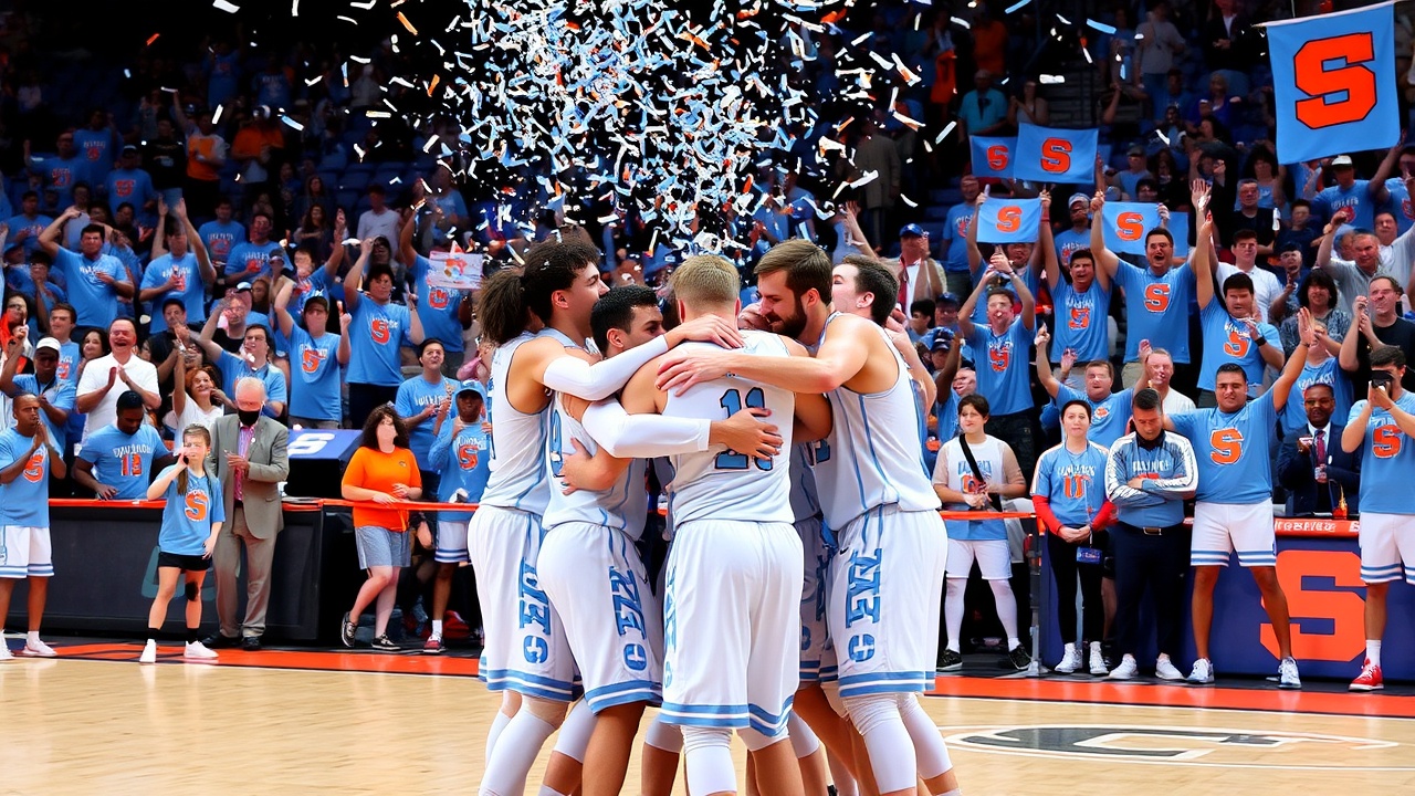 Северная Каролина набрала 13 очков после 10 потерь Syracuse и переиграла Оранжевых в краске со счетом 42-32. Старлинг набрал шесть подряд очков для Оранжевых, чтобы начать второй тайм. Кайл перехватил мяч и пробежал всю площадку для слэма, чтобы сравнять счет 44 с 12 минутами до конца, но Tar Heels сделали рывок 8-0, чтобы взять контроль. Тримбл набрал четыре из восьми.