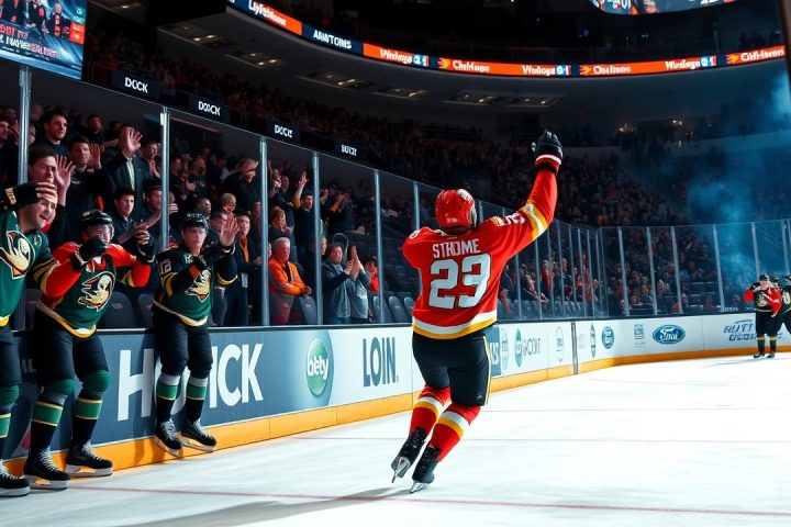 Anaheim Ducks·Beckett Sennecke·Calgary Flames·Cutter Gauthier·Devin Cooley· Райан Стром забивает 500-й балл против бывшей команды, Дакс терпят пятое подряд поражение от Флэймс со счетом 5-3 5 апреля, 2026 Editor Краткий обзор матча АНАХАЙМ, Калифорния. (AP) — Райан Стром забил свой 500-й карьерный балл, поразив ворота…